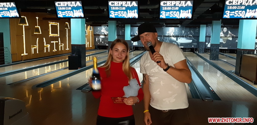 Усі команди за активну участь у конкурсах – отримали та продегустували мегакорисні яблучні чіпси Екофрутик – новинка на житомирському ринку. А перші щасливчики, що вибили страйк, отримали пиво ТМ Carlsberg, а от професіонали, які першими забили три страйки підряд– ТМ Greenday.