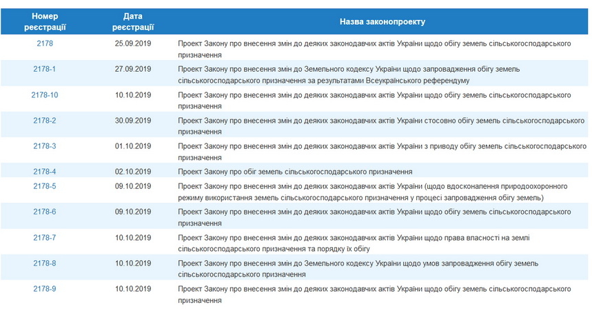 Представлений на брифінгу законопроєкт зареєстрований у парламенті 10 жовтня під № 2178-10. Крім нього зареєстровані ще дев’ять альтернативних законопроєктів.