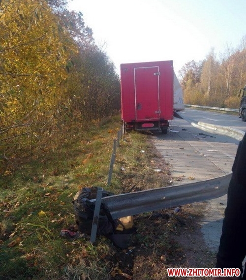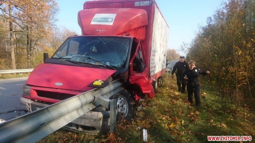 В Олевському районі Житомирської області, на 215-му кілометрі міжнародної траси М-07 на Люблін («варшавка»), вантажний бус Ford Transit напоровся на відбійник.