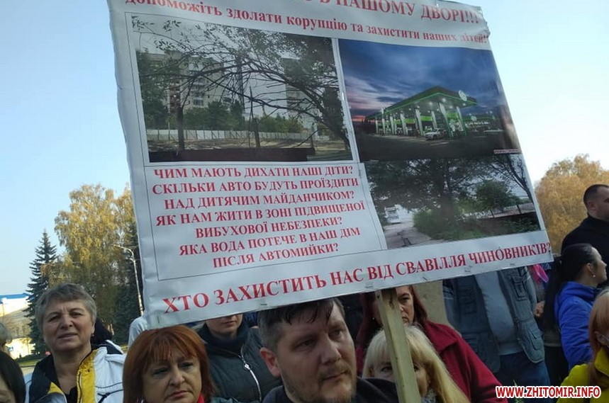Противники будівництва автозаправки на проспекті Незалежності, 29 у Житомирі 24 жовтня вийшли на мітинг під стіни будівлі ОДА та облради на майдані Корольова.