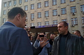 До мітингувальників вийшли голова ОДА Віталій Бунечко, народний депутат по 62-му житомирському округу Ігор Герасименко та один з його заступників Серій Кондратюк. Пізніше люди "викликали" мера Житомира Сергія Сухомлина.