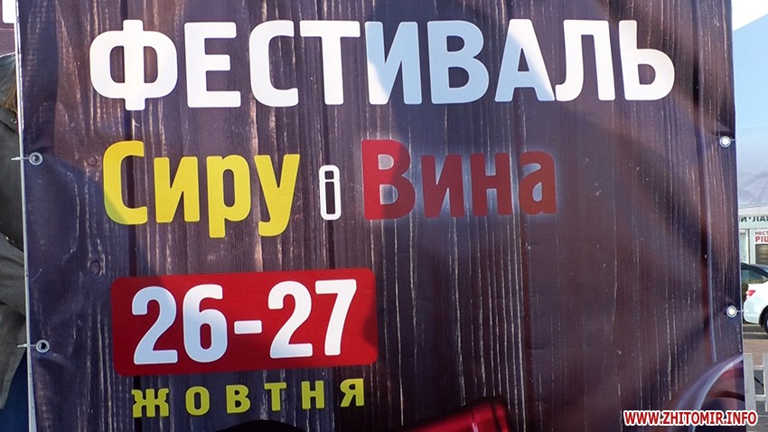 Десятки виноробів і сироварів з усієї України 26-27 жовтня представили свою продукцію на першому у Житомирі Фестивалі сиру та вина. На паркувальному майданчику біля ТРЦ «Глобал UA» житомиряни й гості міста мали змогу скуштувати більш ніж 100 сортів вина та півсотні видів сирів. Також до заходу долучились бджолярі, бондарі та майстри з лозоплетіння.