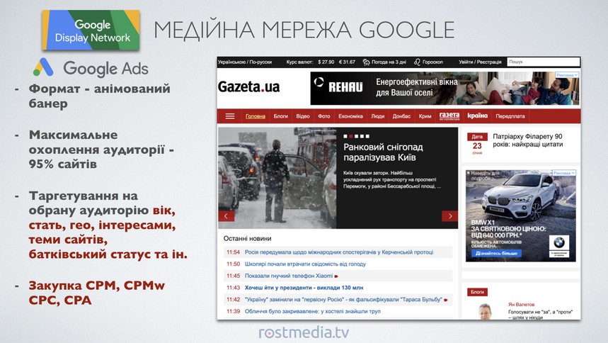На сьогодні нашим клієнтам вже доступні нові передові рішення у Медійній мережі Google, такі як сплата за конверсію – СPA (покупку товару чи замовлення послуги на сайті, або інша корисна дія) та програматік націлювання.