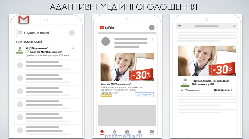 Для сфери послуг та малого бізнесу ми рекомендуємо використовувати так звані Адаптивні медійні оголошення в медійній мережі Google.
