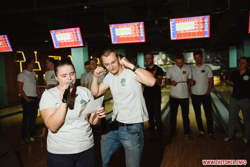 Усі команди за активну участь в конкурсах – отримали та продегустували мегакорисні яблучні чіпси Екофрутик – новинка на житомирському ринку. А перші щасливчики, що вибили страйк, отримали пиво ТМ Carlsberg, а от професіонали, які першими забили три страйки підряд – ТМ GREENDAY.