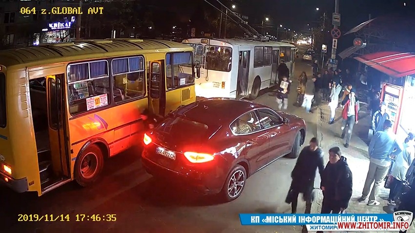 15 листопада навпроти «Глобала» в Житомирі водій автомобіля Maserati припаркувався на зупинці громадського транспорту, щоб піти до кіоску.