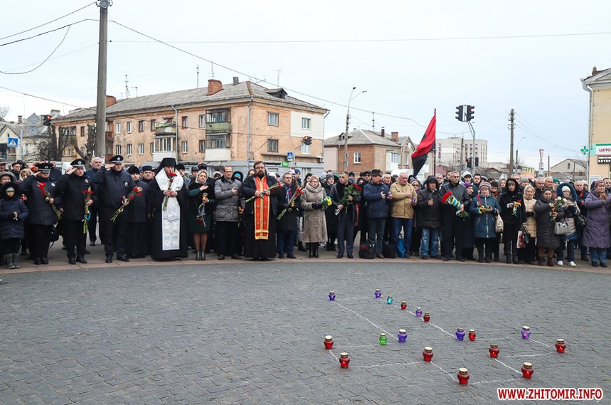 Пом’янути жертв голодоморів прийшли близько 100 житомирян, представники влади та духовенства.