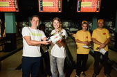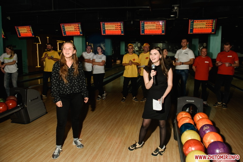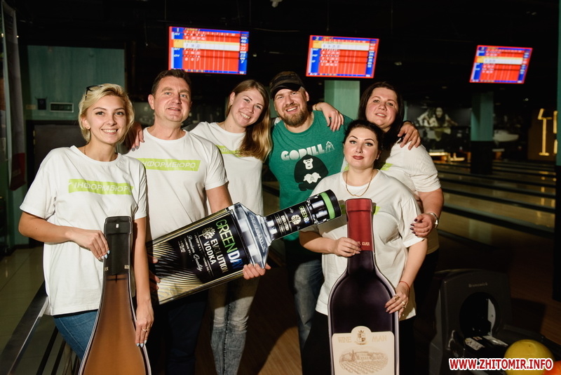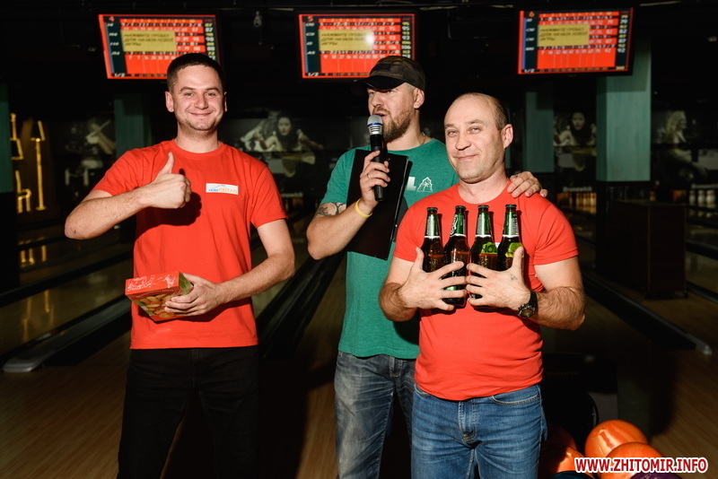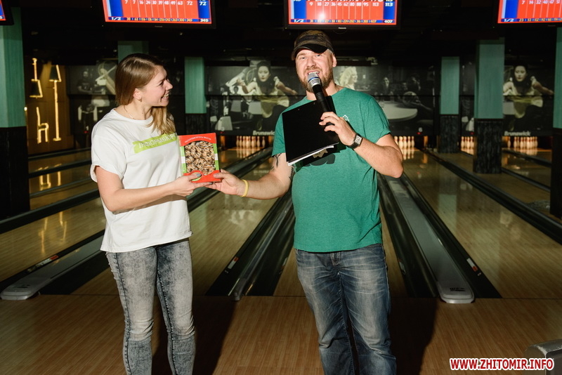 Усі команди за активну участь в конкурсах отримали та продегустували мегакорисні яблучні чіпси Екофрутик – новинка на житомирському ринку. А перші щасливчики, що вибили страйк, отримали пиво ТМ Carlsberg, а от професіонали, які першими забили три страйки підряд – ТМ GREENDAY.