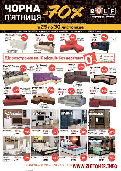 «Чорну п'ятницю» у Гіпермаркеті меблів ROLF розпочато! Лище з 25.11 – 30.11.2019, отримай можливість придбати меблі та товари для дому за супер знижкою – до 70%!