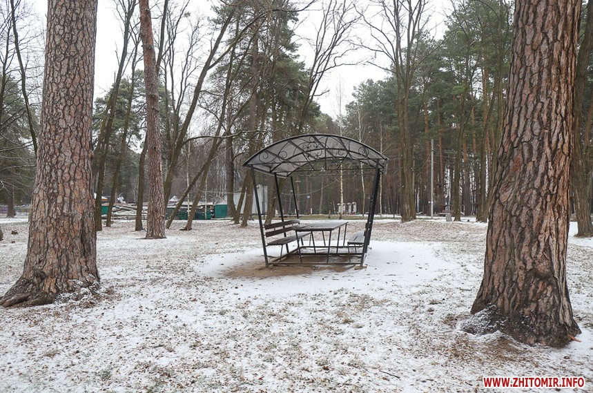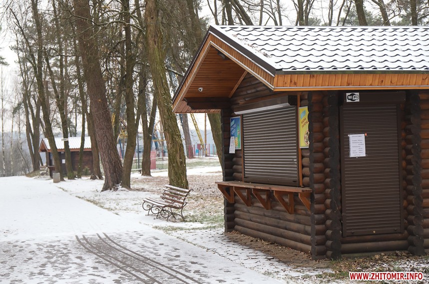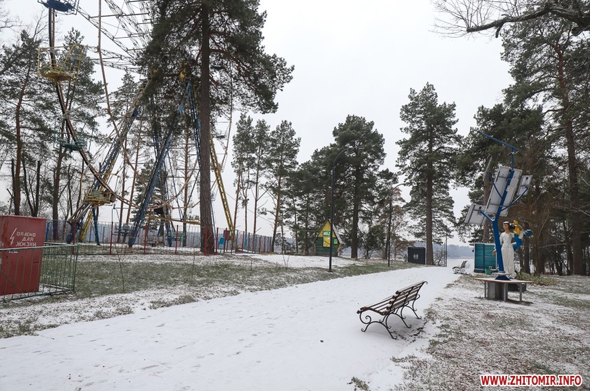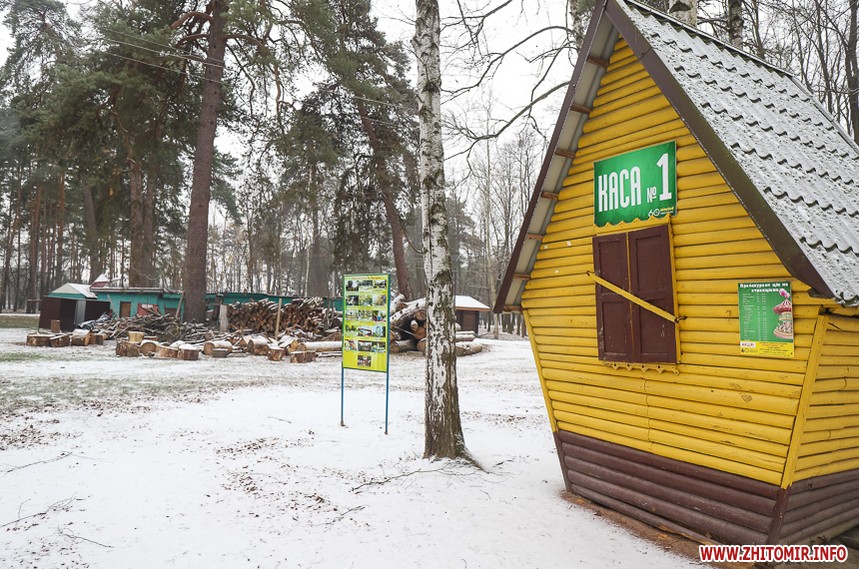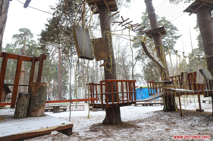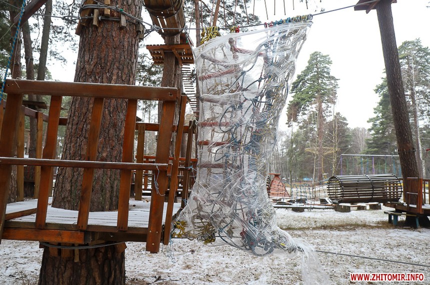 У житомирському гідропарку розпочався зимовий сезон. Однак, дуже мало охочих прогулятися в морозну погоду в припорошеному снігом лісі. Атракціони та мотузковий парк до весни «на канікулах».