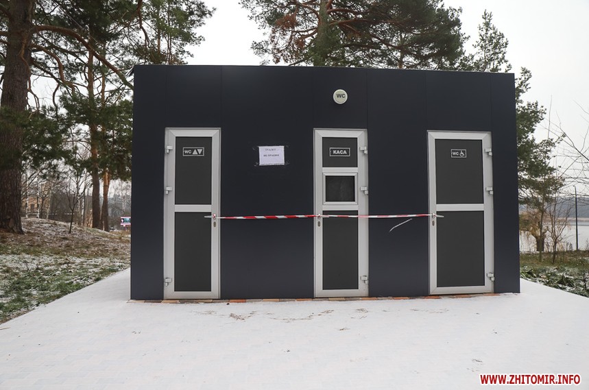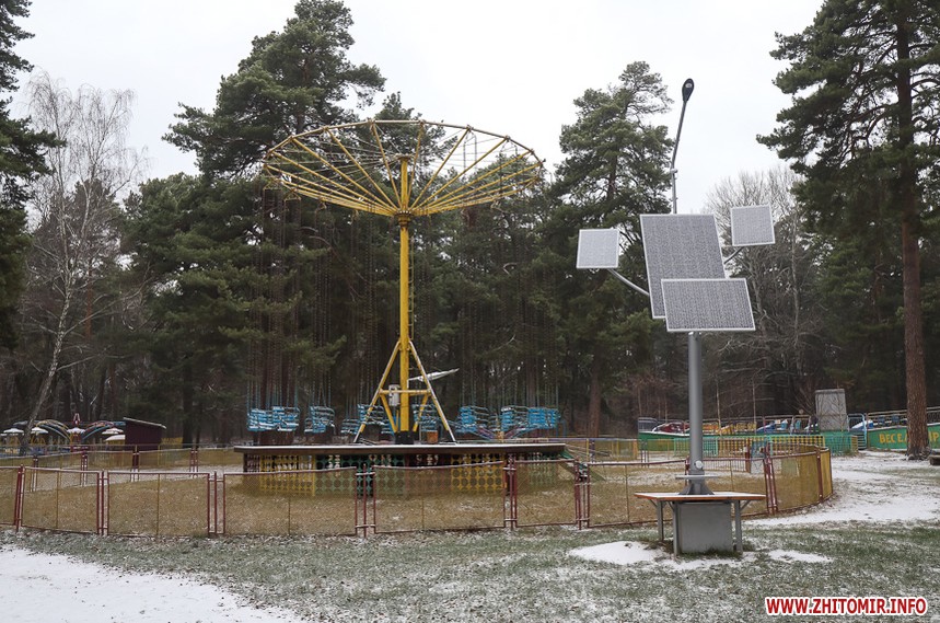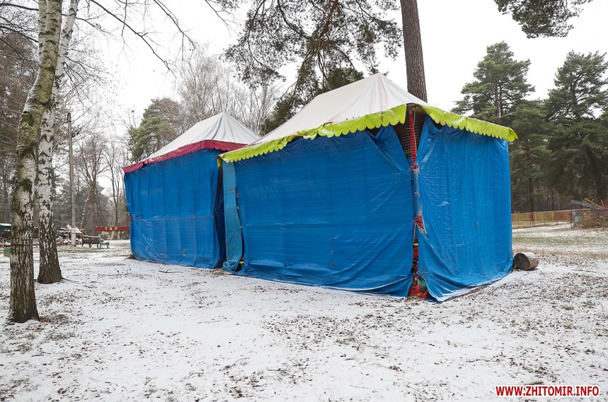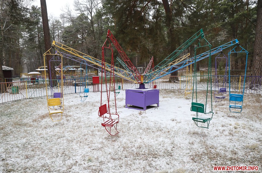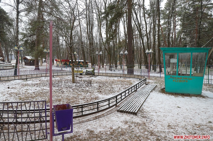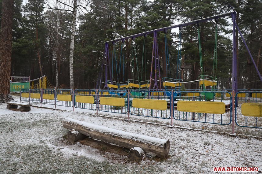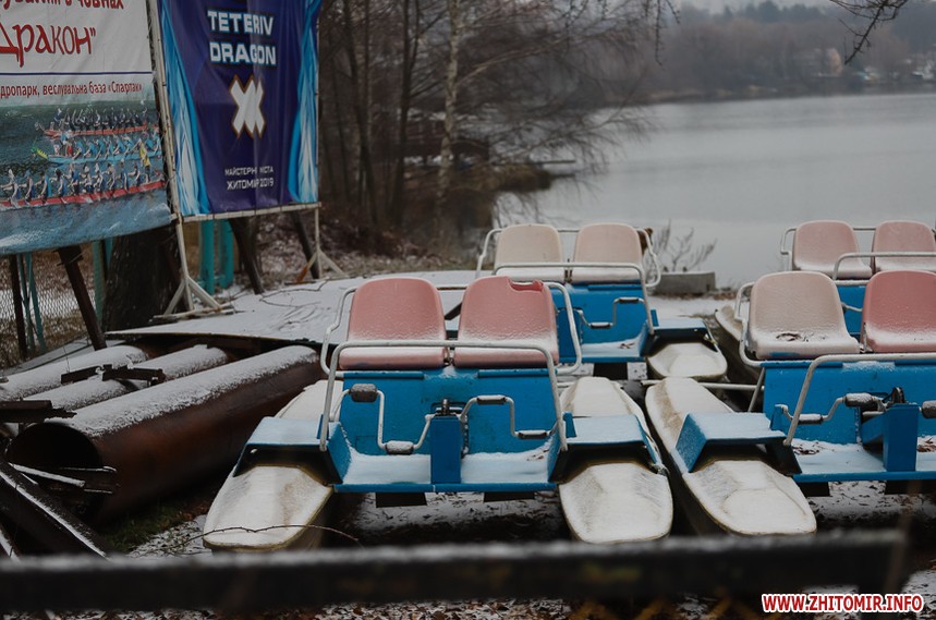 У житомирському гідропарку розпочався зимовий сезон. Однак, дуже мало охочих прогулятися в морозну погоду в припорошеному снігом лісі. Атракціони та мотузковий парк до весни «на канікулах».