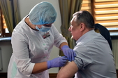 Голова Житомирської облдержадміністрації Віталій Бунечко показав, як йому та підлеглим роблять щеплення прямо на робочому місці.