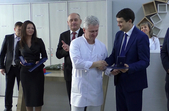 Далі очільник парламенту разом з керівником області та депутатами оглянули, як працює обласний центр вертебрології. Під час зустрічі Дмитро Разумков вручив відзнаки трьом лікарям і подякував усім медпрацівникам за те, що повертають до життя наших бійців.