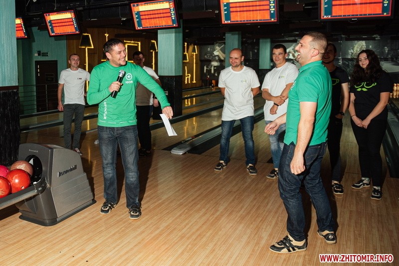 Усі команди за активну участь в конкурсах отримали та продегустували мегакорисні яблучні чіпси Екофрутик – новинка на житомирському ринку. А перші щасливчики, що вибили страйк, отримали пиво ТМ Carlsberg, а от професіонали, які першими забили три страйки підряд – ТМ GREENDAY.