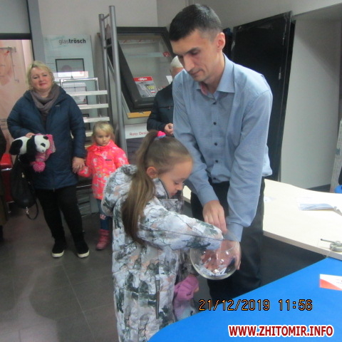 Затим він перемішав «лотерейки», поміщені у ємність, а витягла п’ять із них та визначила щасливчиків маленька Даринка.