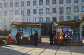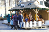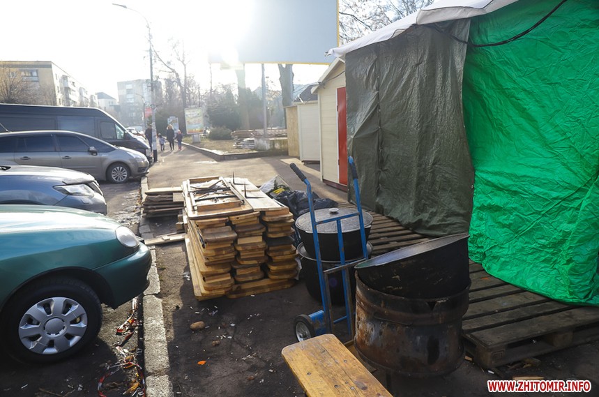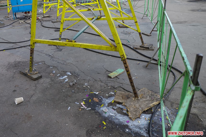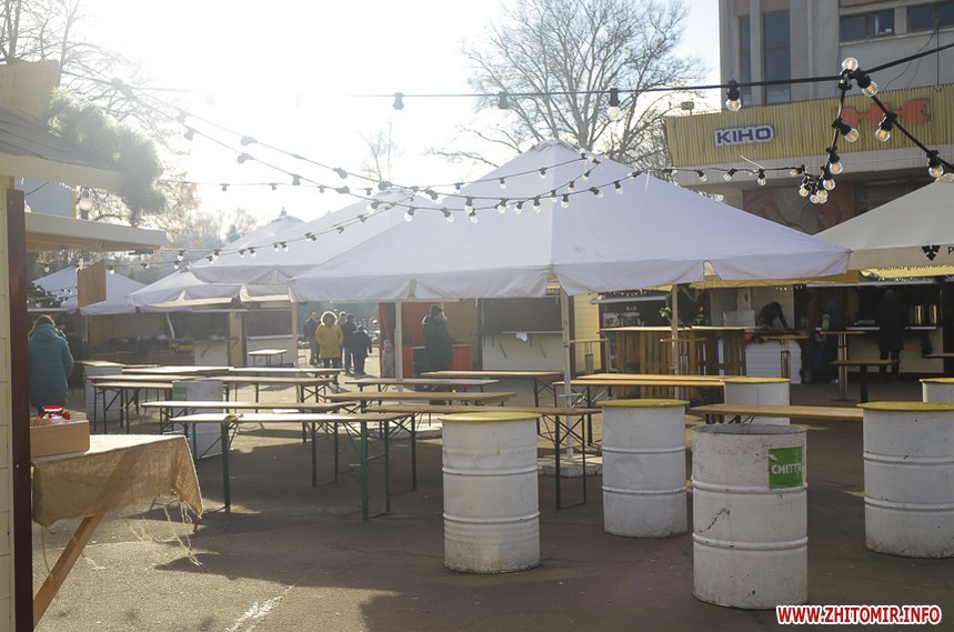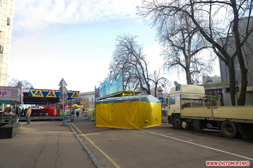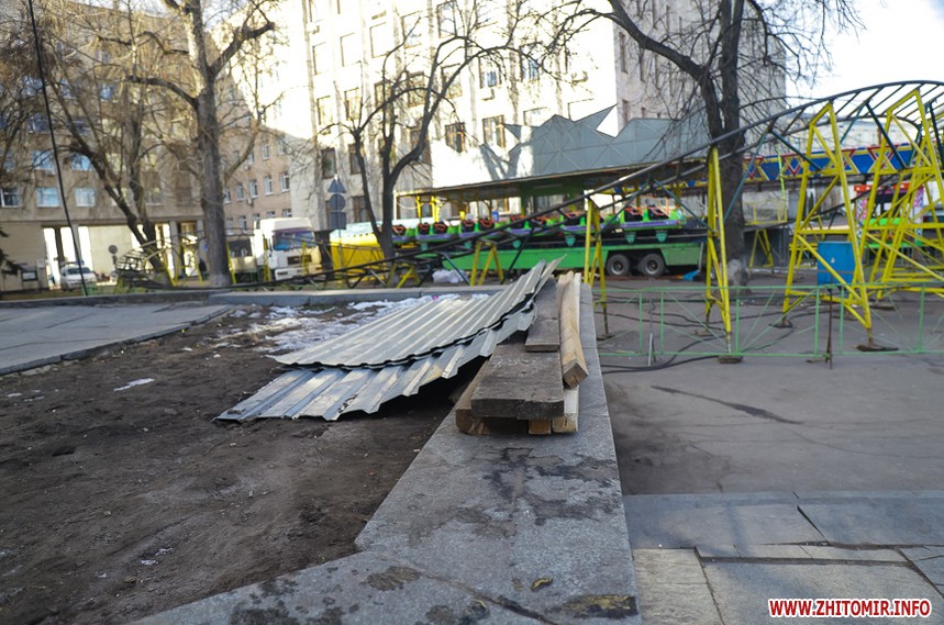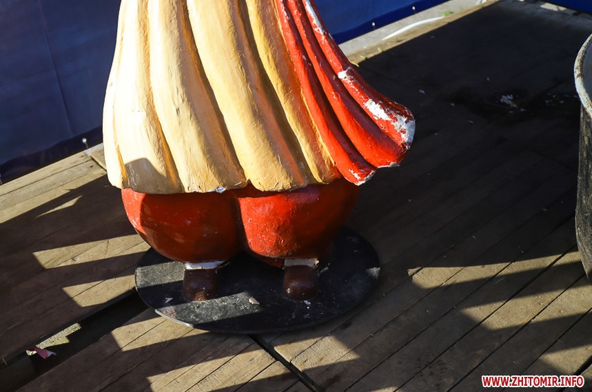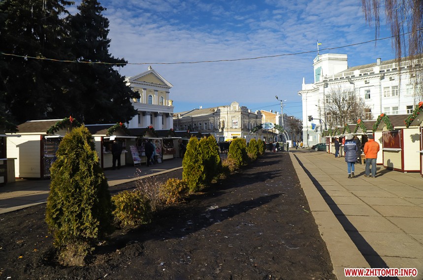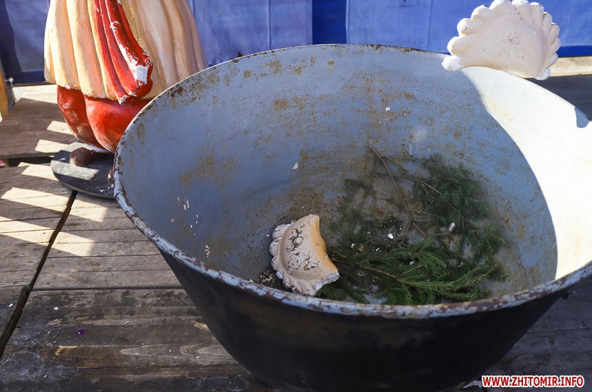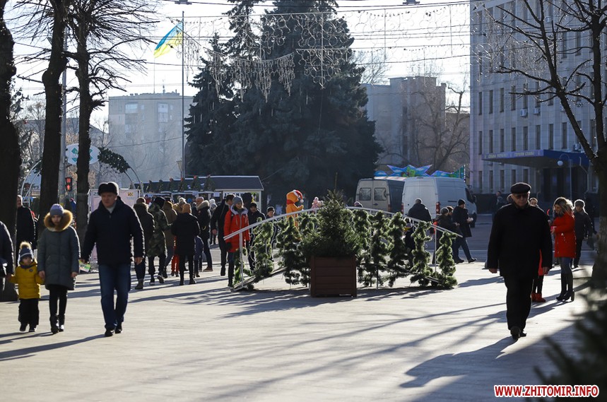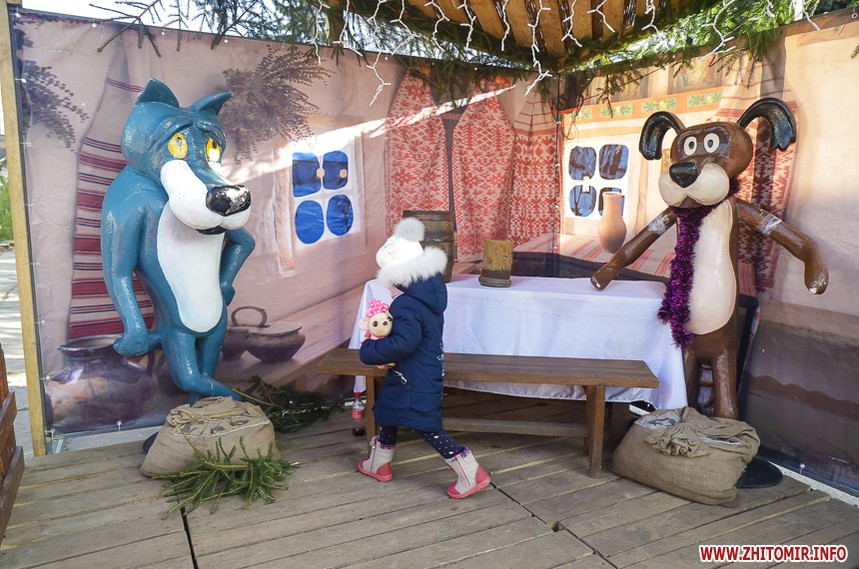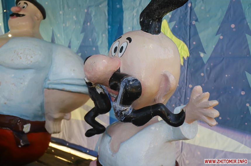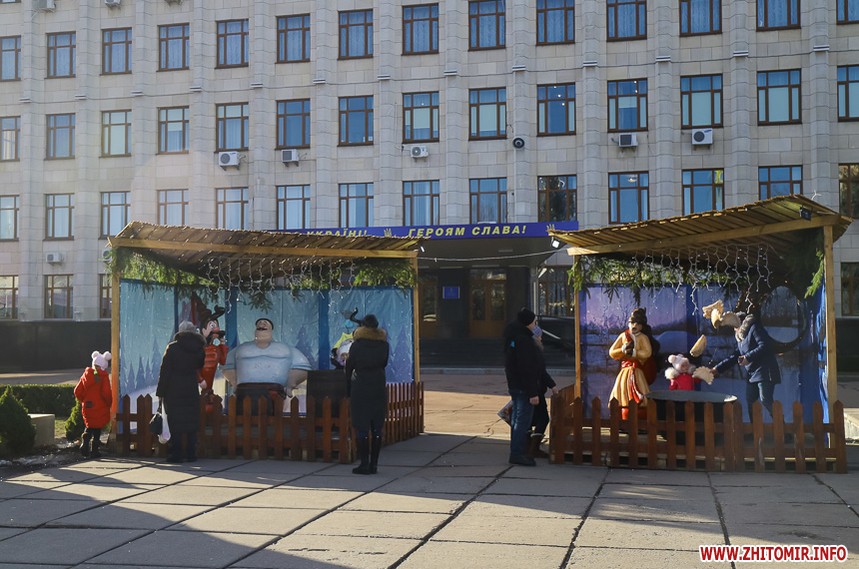Житомиряни зустріли новий рік й готуються до Різдва. На майдані Корольова біля головної ялинки вже традиційно працює Різдвяний ярмарок та розміщені казкові локації для фото. Деякі з них вранці 3 січня мають досить пошарпаний вигляд: облущена фарба, пошкоджені елементи та примотані скотчем частини фігур. Й огорожі біля фотозон на майдані Корольова та шопки на Михайлівській не зупиняють охочих зробити святкове фото.