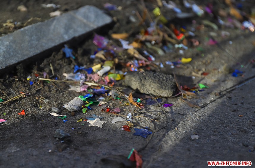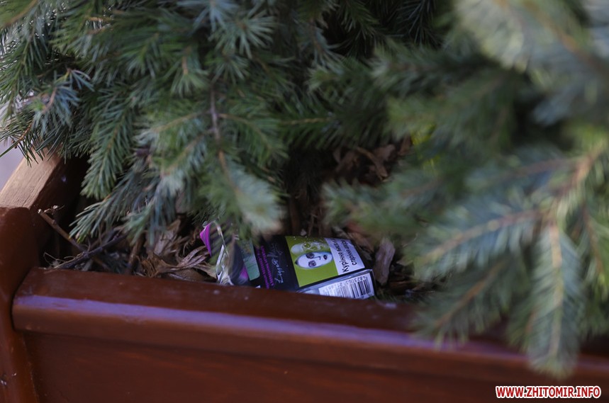 Крім того, попри наявність достатньої кількості смітників, сміття лежить біля бордюрів та під ялинами.