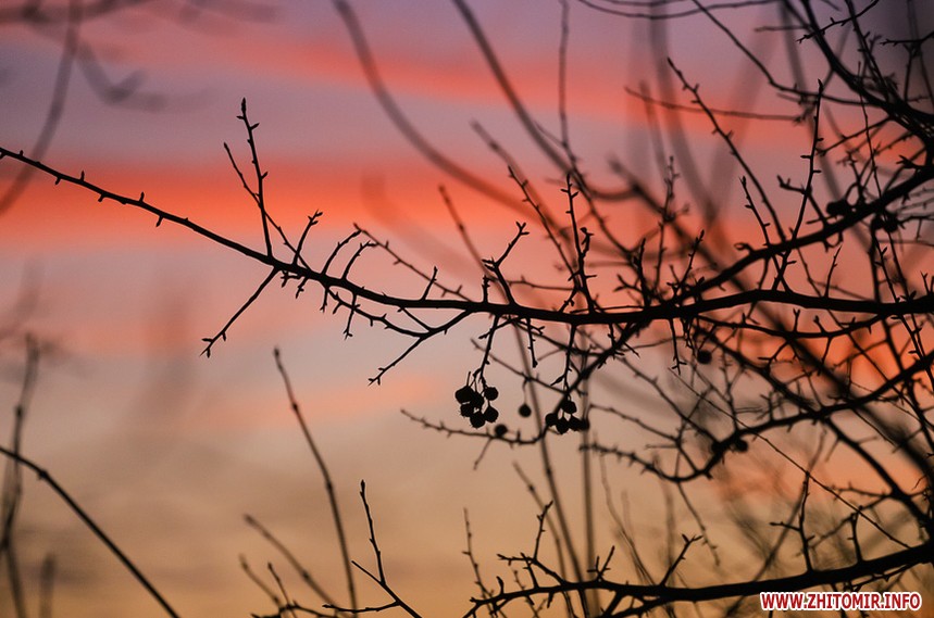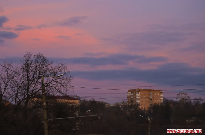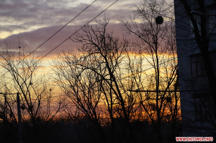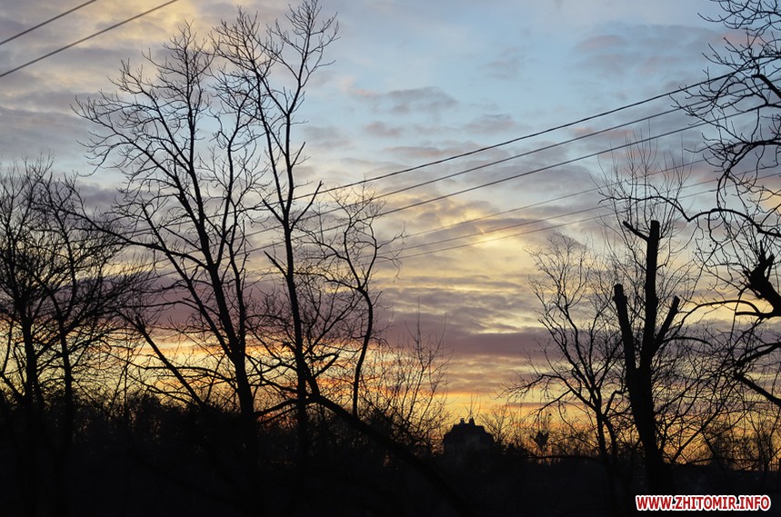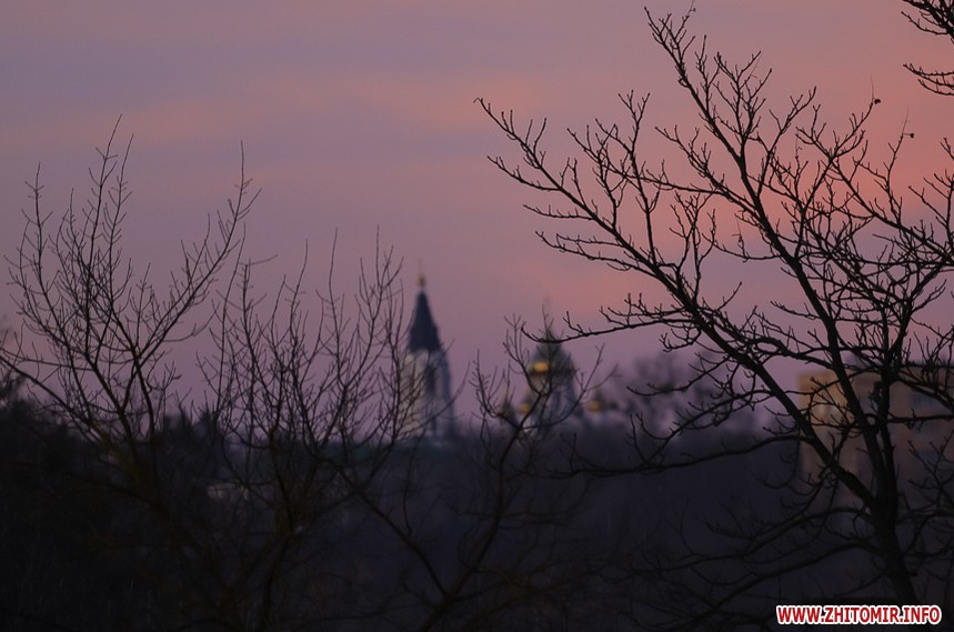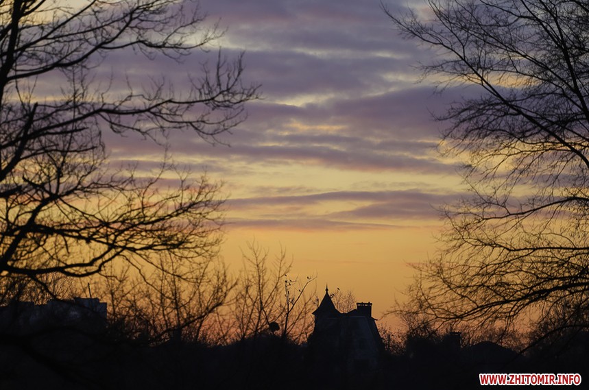 У Житомирі січень 2020 року поки що аномально теплий та без снігу. Комфортна зимова погода дозволяє неспішно спостерігати за заходом сонця, як то зробила наша фотограф 14 січня.