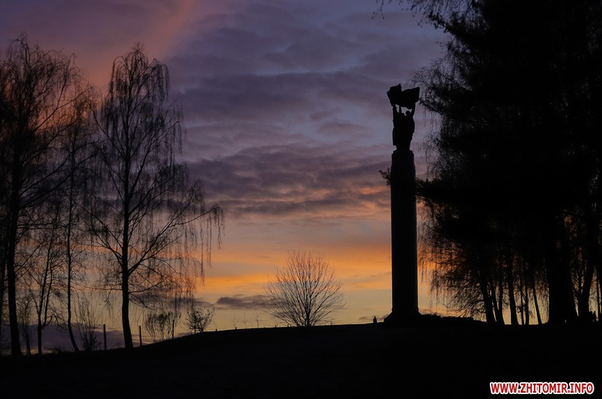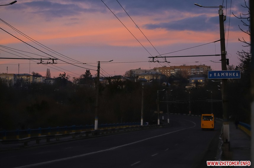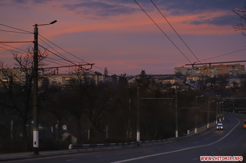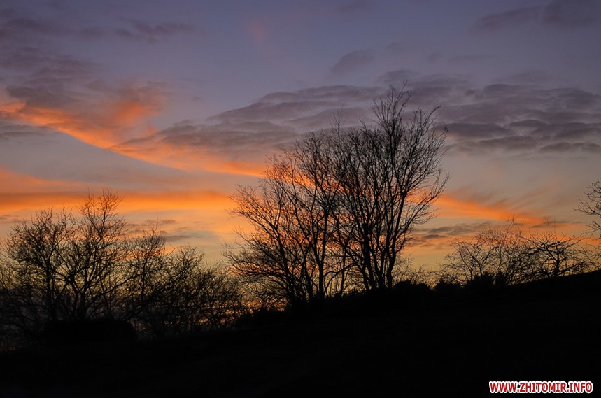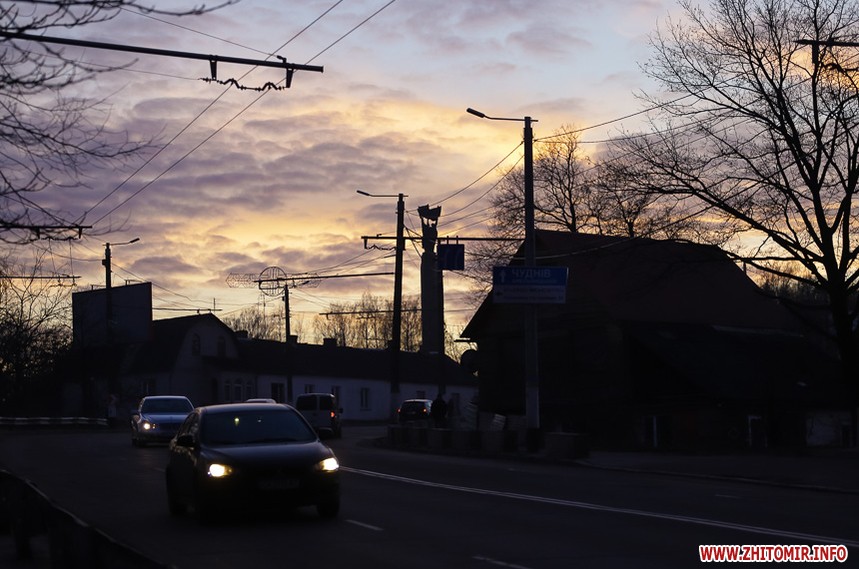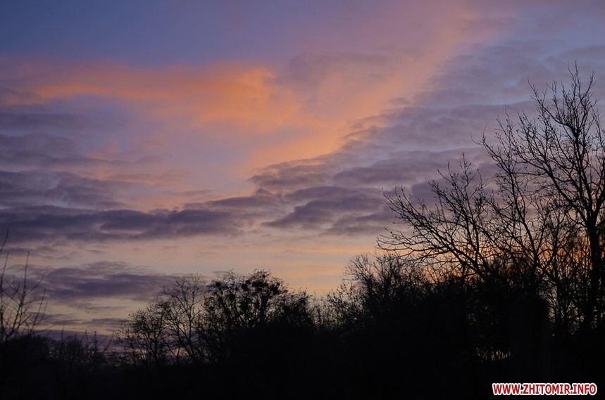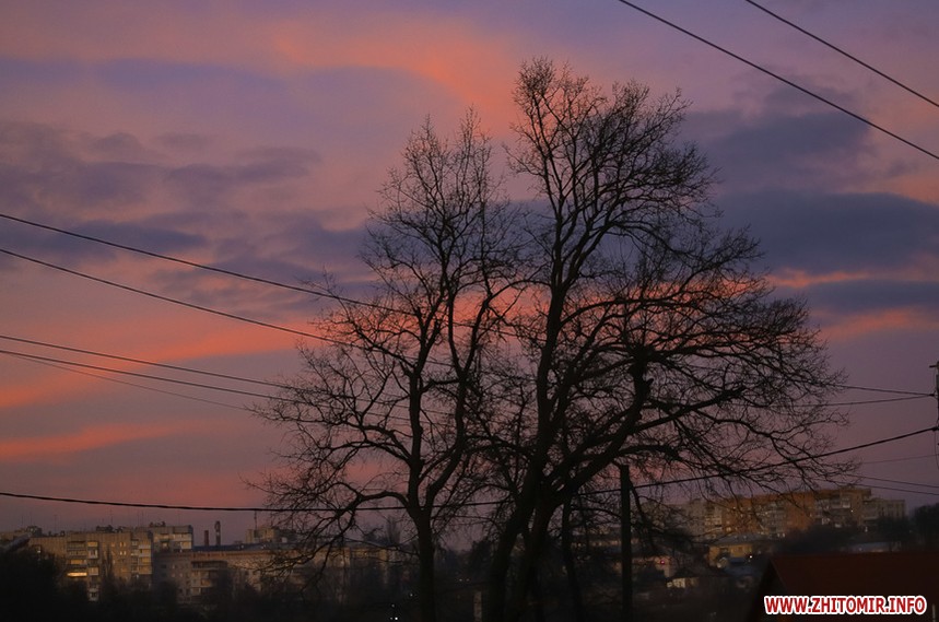 У Житомирі січень 2020 року поки що аномально теплий та без снігу. Комфортна зимова погода дозволяє неспішно спостерігати за заходом сонця, як то зробила наша фотограф 14 січня.