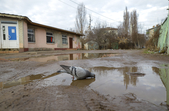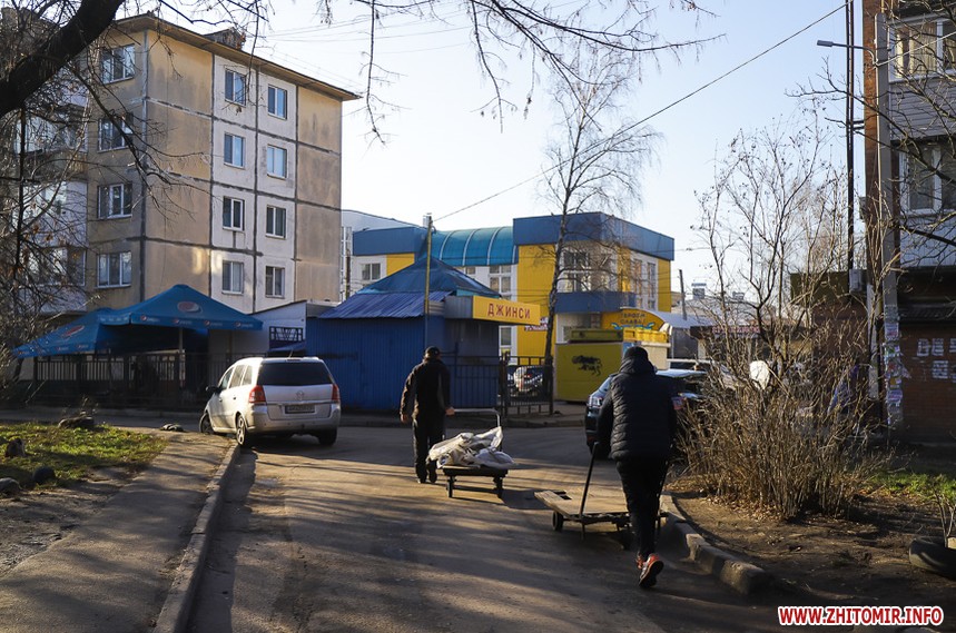 Житній ринок у Житомирі і територія кругом нього – місце постійної метушні. Про те, що тут часто буває дуже людно, свідчать, зокрема, купи сміття, які цієї безсніжної зими видно в «усій красі». Якоїсь «важкості» та непривітності тутешнім пейзажам додають і широкі калюжі та болото кругом.