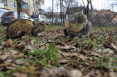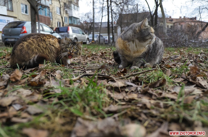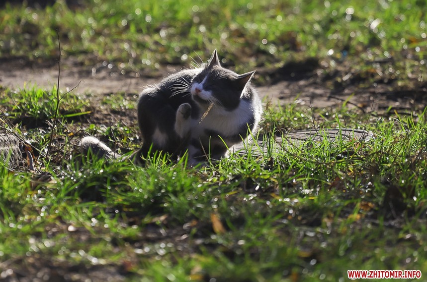Фото, зроблені у дворах біля Житнього ринку в середині січня, більше нагадують весняні – березневі чи навіть і квітневі: чисте небо, яскраво світить полуденне сонце, на світло-зеленій траві муркочуть коти, у повітрі – зграя голубів.