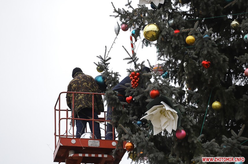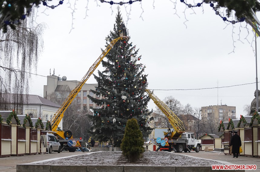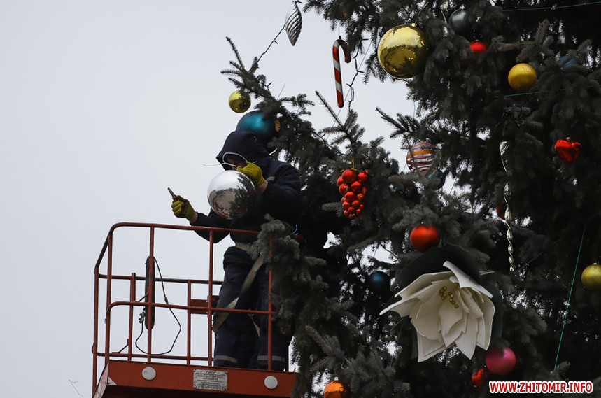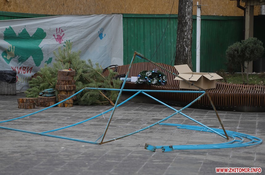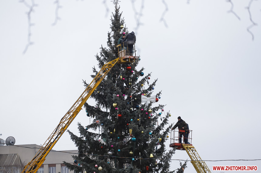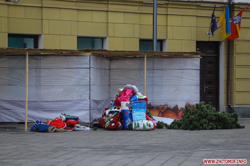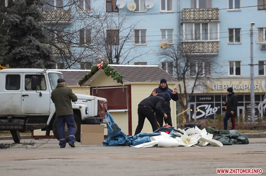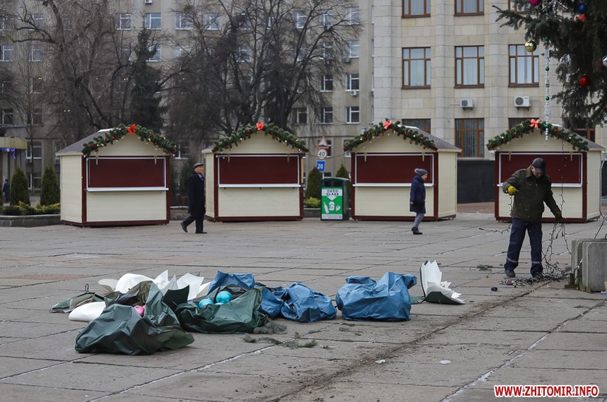 20 січня комунальники почали розбирати головну ялинку, що на майдані Корольова: за допомогою спецтехніки знімають іграшки та гірлянди. Деякі будиночки на Різдвяному ярмарку сьогодні ще працюють, але більшість зачинені.