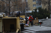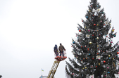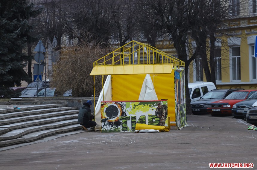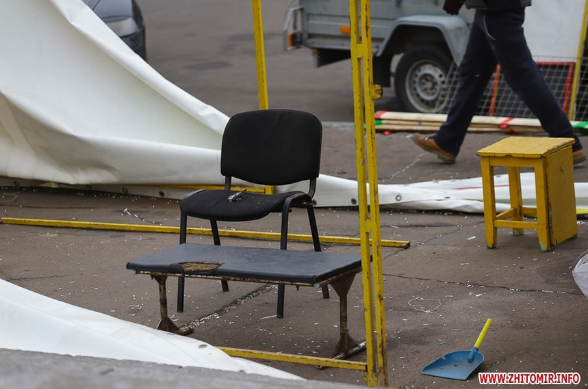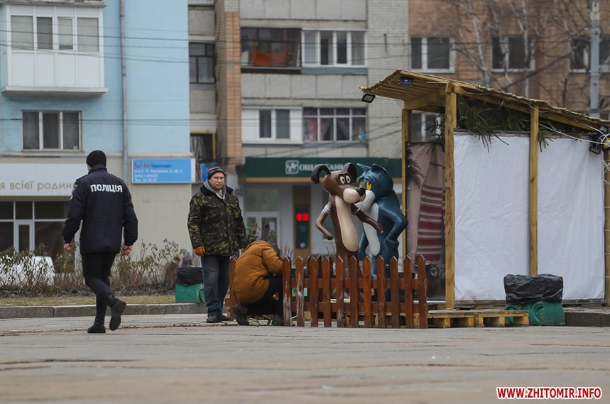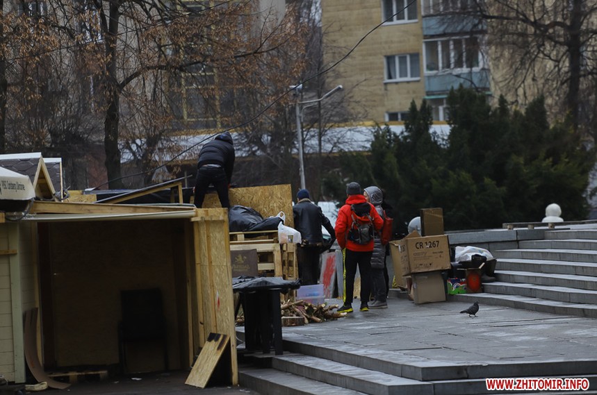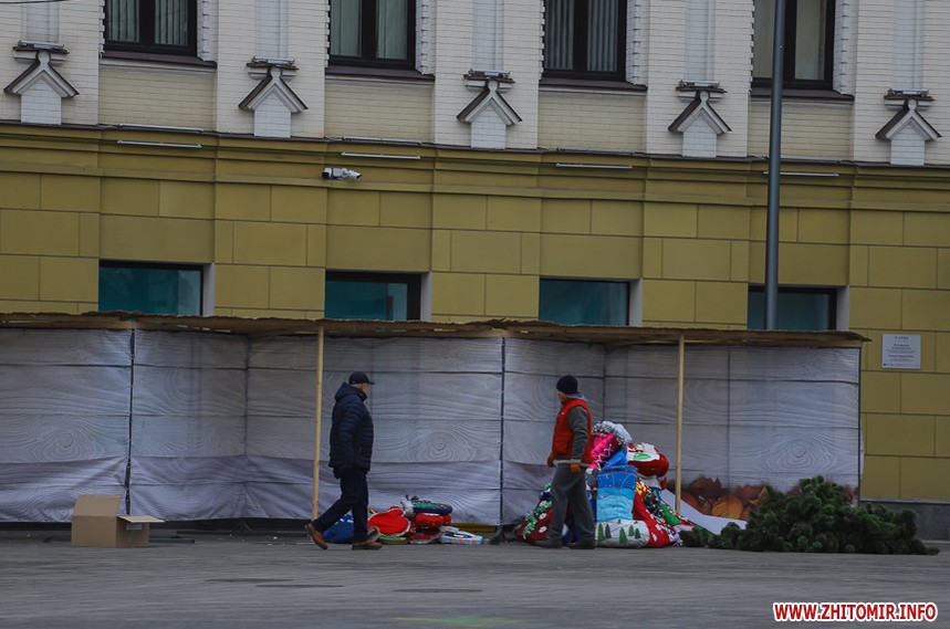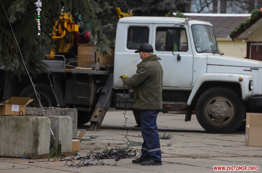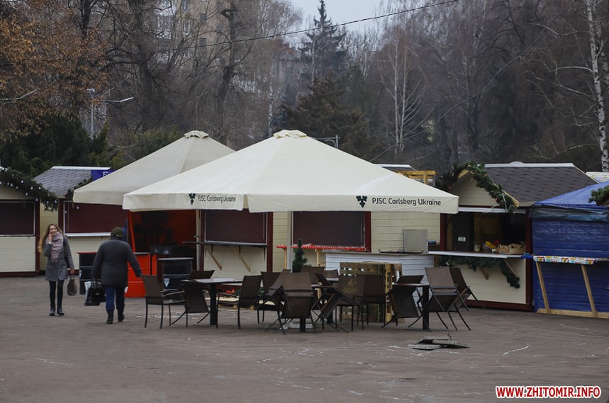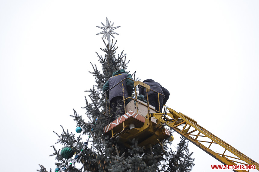 20 січня комунальники почали розбирати головну ялинку, що на майдані Корольова: за допомогою спецтехніки знімають іграшки та гірлянди. Деякі будиночки на Різдвяному ярмарку сьогодні ще працюють, але більшість зачинені.