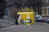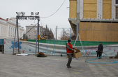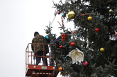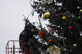 Святкові декорації прибирають і на вулиці Михайлівській.