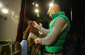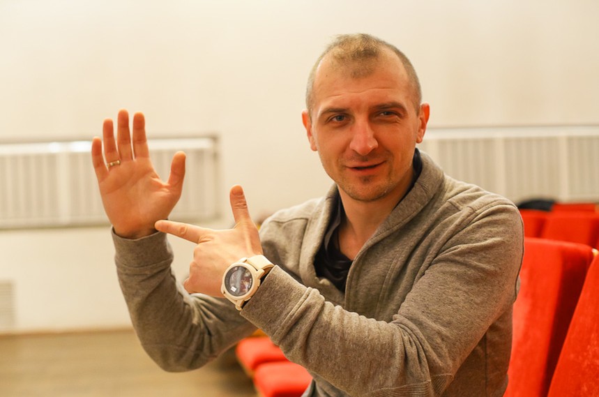 «У нас є випадки у виставах, моменти діалогів з лялькою, де ти працюєш одночасно із собою (у живому плані), і лялькою. Стоїш – ось глядач, ось лялька, ось ти. Ти відображаєш свою емоцію, перемикаєшся на ляльку і момент діалогу. Це важко. Шиза? (сміється, - ред.) Спочатку були такі моменти, коли ти не зовсім розумієш, де ти, а де лялька. Потім звикаєш. Вчишся розмежовувати. Але у більшості випадків, коли ти граєш через ляльку, тебе не видно. Актор переживає сам і транслює ці емоції через ляльку», – розповідає Олег.