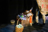 «Кожного року, взимку, коли нас, як ми кажемо, «продають в рабство», бо за три тижні потрібно відпрацювати 50-60 вистав, відбуваються дуже веселі пригоди. Але ми йдемо до кінцевого результату і знаємо, що в кінці останньої вистави, яка відбувається у театрі по квиткам – це «зелений спектакль». Вистава, на якій актори починають один з одного глузувати, перевіряти на майстерність, відбуваються такі моменти, які у рамках сценарію, але не за сценарієм. Актори перевіряють один одного на реакцію, на імпровізацію. Цій традиції вже багато років. Наші постійні глядачі приходять та купують квитки на першу виставу та на останню виставу. На останню виставу, у більшості, приходять без дітей. Відбувається для дорослих «повний фонтан». Ми, звісно ж, попереджаємо глядачів. Касир у касі попереджає, адміністратори у касі також попереджають і перед початком вистави хтось виходить на сцену і повідомляє глядачів, що це за традиція, чому так, як це відбувається. Завжди ми готуємо один одному багато сюрпризів, «підстав». Одного разу ми вирішили просто за годинниковою стрілкою помінятися ролями. Снігуронька-ведуча, моя учениця, в той час була у інший гримерці та про це не знала. Мені випала роль ягняти. Ягня з’являлося на ширмі як маленька лялечка, а під час чаклування воно перетворювалося на живу людину. Оскільки, то один з головних персонажів, тексту там багато. У момент перетворення я вискакую на сцену. Студентка не знала, що ми помінялися ролями. Вона дивиться на мене: «Ягнятко?!» Я, не знаючи тексту, вирішив грати по іншому. Ягнятко - так ягнятко. Я: «Беее». І пів вистави у нас триває діалог такий: вона зі мною говорить, викручуючи текст так, щоб відповісти ще й за мене, бо я відповідаю тільки «Бееее». Глядачам у залі, зрозуміло, що весело й потішно. Потім мені вже стало шкода дитину, було ще одне «чаклунство» і я вирішую заговорити. Я починаю розмовляти, а Снігурка робить так (актор розводить руками, ніби намагаючись щось сказати), і просто тиша. Наступні пів вистави тягнув уже я».