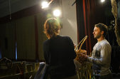 «Режисер вистави - наш актор, Віктор Гущин. Ця вистава – якраз той момент, коли все робиться власними силами. Історія кохання хлопця і дівчини, які прийшли у гості до сільського дивака, який любить розповідати різні казки. Він погоджується допомогти їм, якщо вони зіграють з ним казку, в дитинство. Все відбувається у відкритому прийомі, де звичайні люди стають акторами. Тут навіть не можна сказати, кого ти граєш. Все взаємопов’язано. У цій виставі я граю хлопця, медведя, господаря і у мене тут «роляка» дуба! Це просто дивовижна роль! Я вам покажу дуба! Перерва закінчилася, чекають, поки ми з вами договоримо та працюватимемо над сценою з медведем. Там маленький епізодик. Можете подивитися», - запрошує поглянути на репетицію актор.
