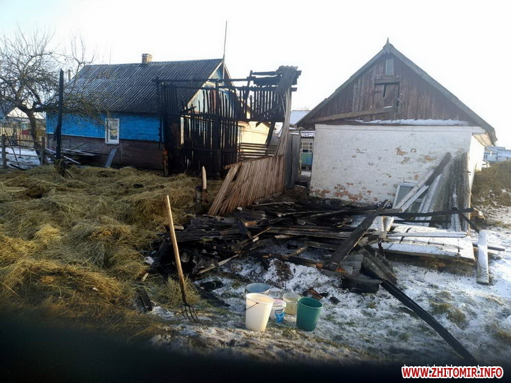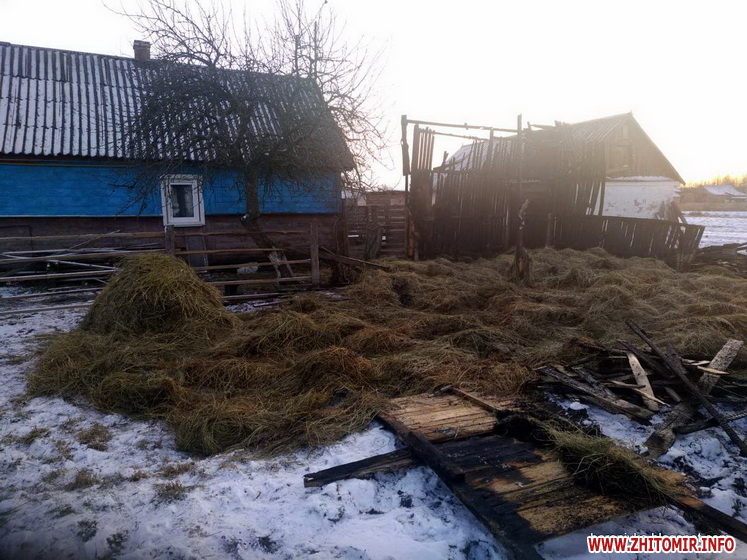 «5 лютого о 14:36 до служби порятунку надійшло повідомлення про пожежу господарчої споруди – сінника в смт Довбиш Баранівського району. На місці події було виявлено охоплений вогнем сінник, розташований на відстані 0,5 м до сараю та 1,5 м до житлового будинку. Пожежу вдалося ліквідувати лише о 16:00, не допустивши її поширення на житлову забудову. Також на місці події було виявлено та направлено до лікарні каретою швидкої допомоги 38-річного чоловіка, що отримав 7% опіків тіла середньої тяжкості. У подальшому слідчо-оперативною групою було встановлено, що вищезгаданий громадянин, перебуваючи у стані алкогольного сп'яніння, намагався вчинити самогубство. На очах у жителів селища чоловік, за допомогою бензину з паяльної лампи, підпалив власний сінник та заліз в осередок загорання. Завдяки сусідам чоловіка вдалося витягти з вогню та стримати до приїзду карети швидкої допомоги. Незважаючи на спроби рятувального підрозділу та населення загасити пожежу, палій намагався підтримати процес горіння гумовими шинами та повторно вскочити у полум'я», - повідомляє сайт Місто Баранівка з посиланням на інформацію рятувальників.