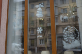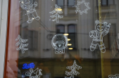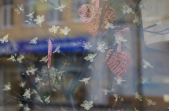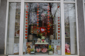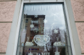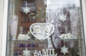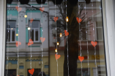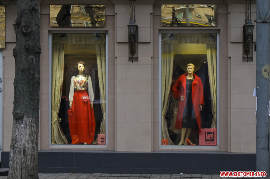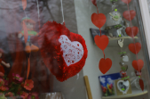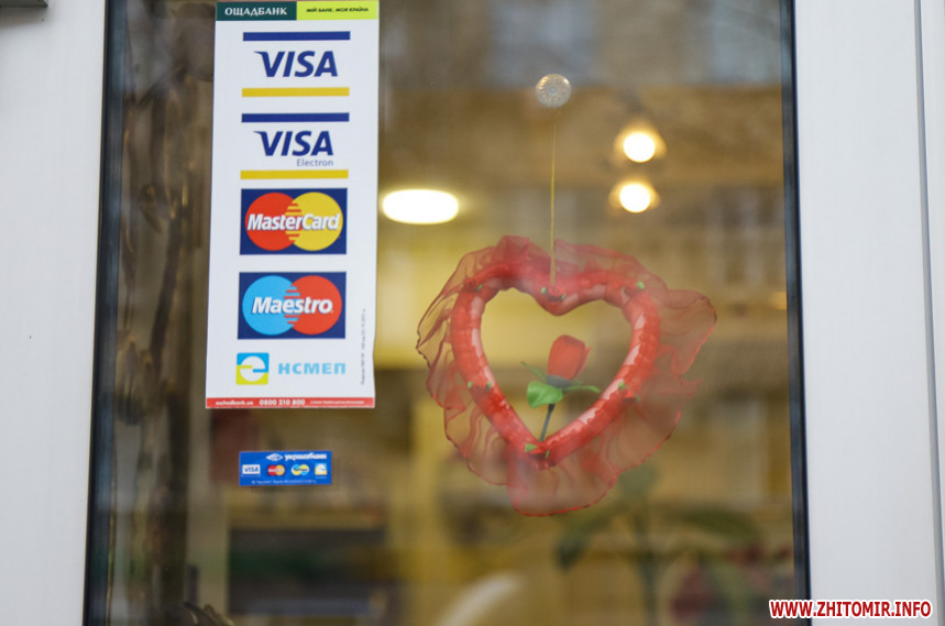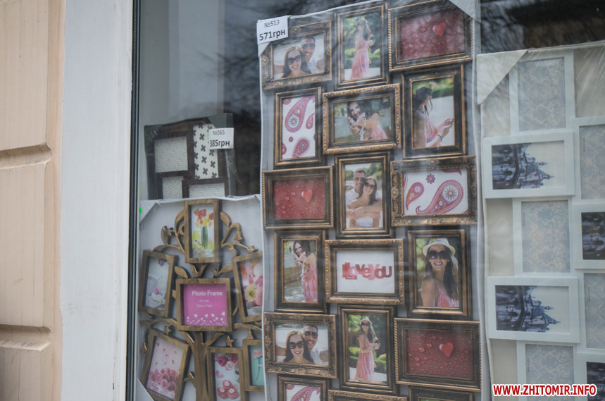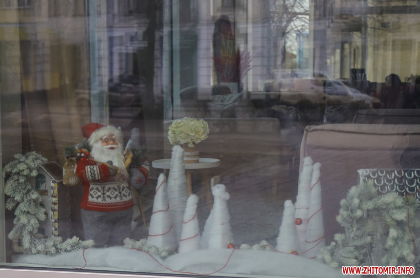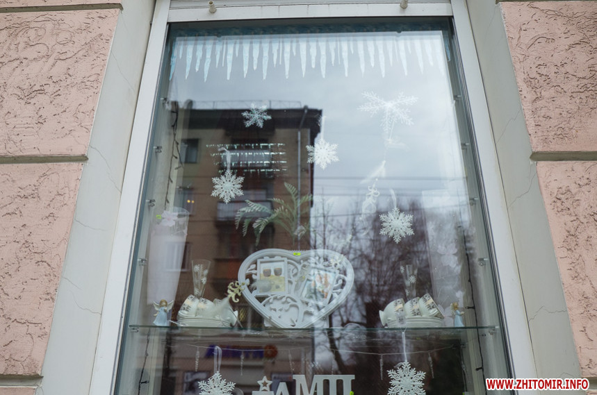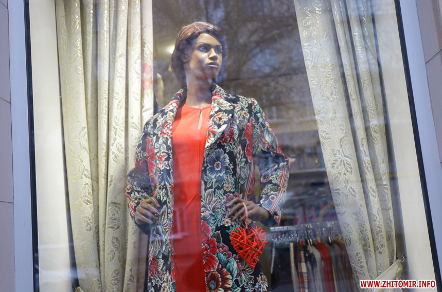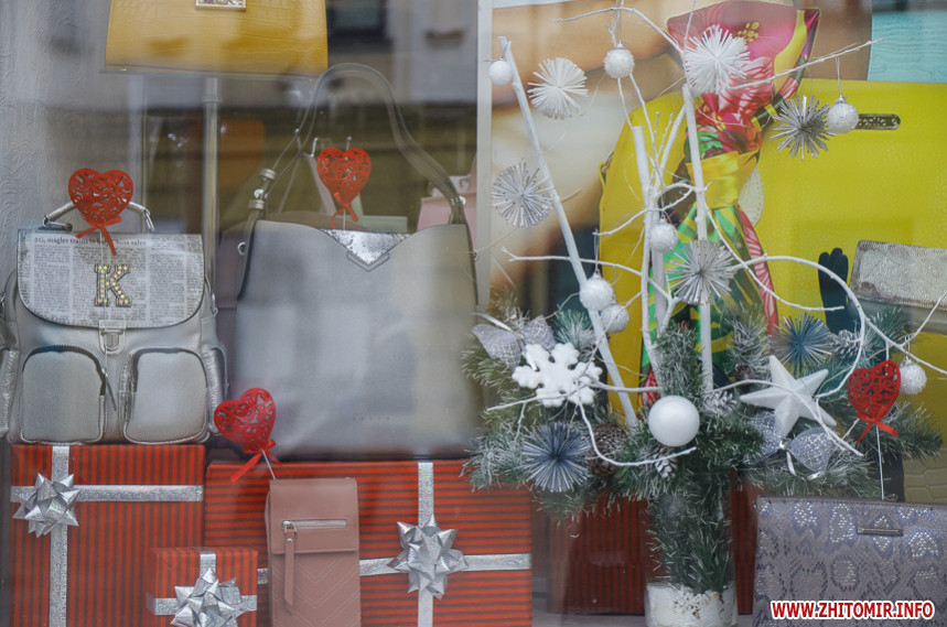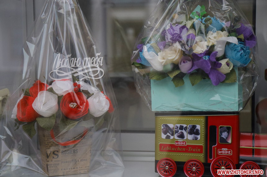 На вулицях Житомира до святкування Дня святого Валентина готуються не активно. У вітринах та вікнах закладів ще й досі ялинки, сніжинки та Санта Клауси. Лише поодинокі власники розбавили картину червоними сердечками.