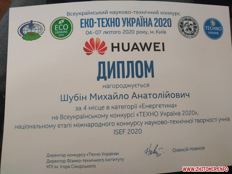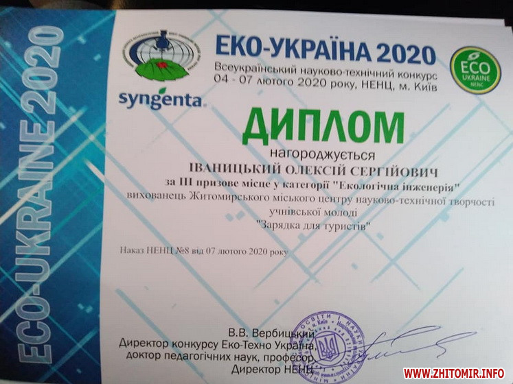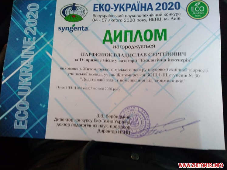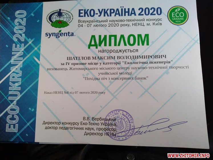 Як повідомляв Житомир.info, у 2017 житомирські школярі посіли призові місця та здобули відзнаки на Всеукраїнському конкурсі юних раціоналізаторів та винахідників еколого-натуралістичного напряму.