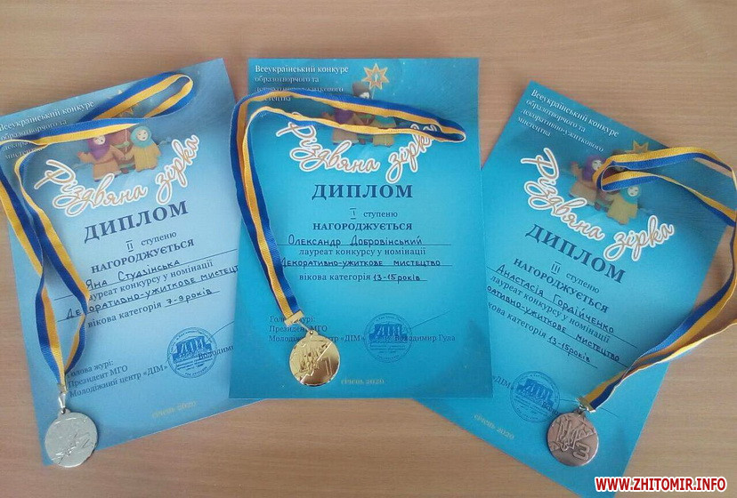 - - вихованець гуртка «Різьблення по дереву» Добровінський Олександр з роботою «Різдвяна зірка» (керівник гуртка Заєць І.В.), виборов золоту медаль;