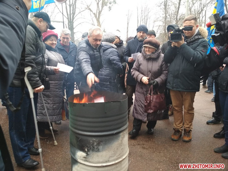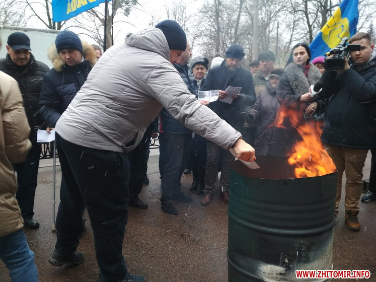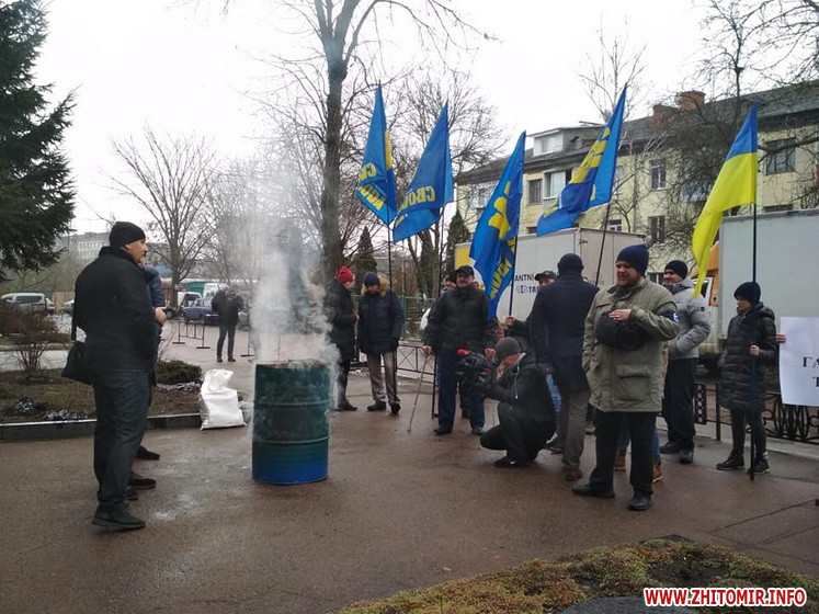 Біля офісу АТ «Житомиргаз» 13 лютого влаштували акцію проти двох платіжок за газ.