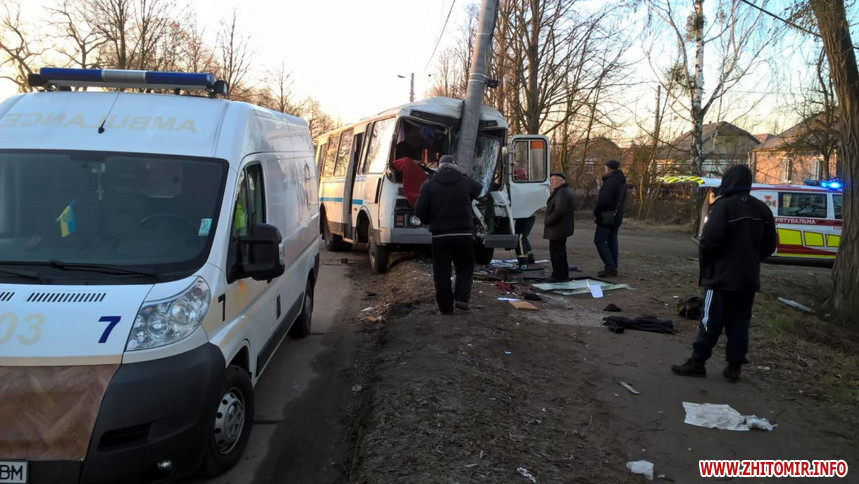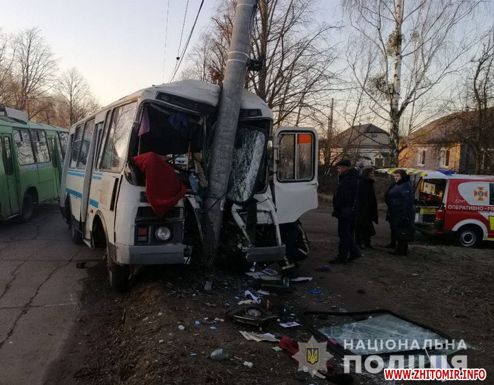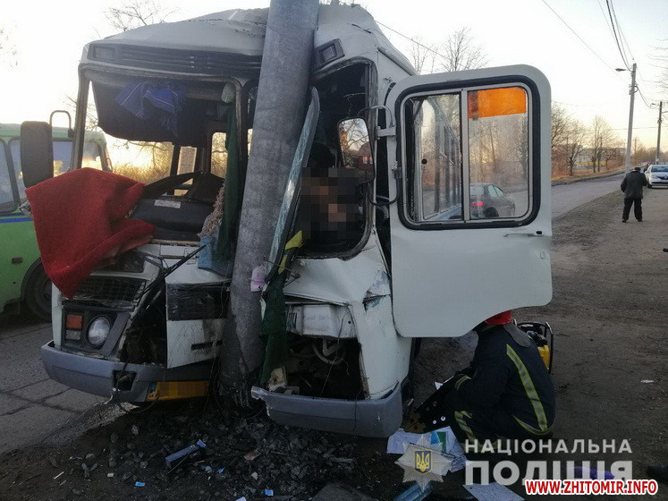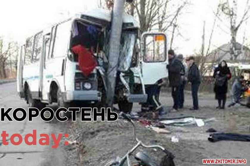 «За попередньою інформацією, 66-річний водій пасажирського автобуса ПАЗ-4234, що працював на міському маршруті, рухаючись вулицею м. Коростеня, вчинив зіткнення з електроопорою. У результаті керманич загинув на місці події. Двоє пасажирів транспортного засобу, 56-річна та 63-річний коростенці, звернулись до місцевої лікарні для надання медичної допомоги. Нині вони проходять обстеження», – йдеться у повідомленні.