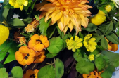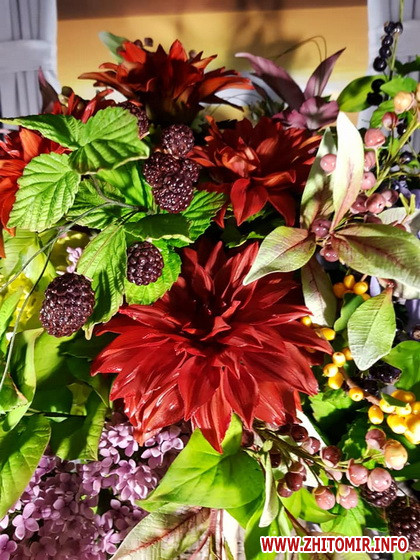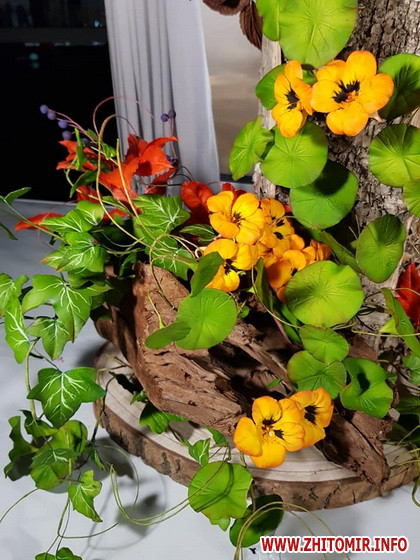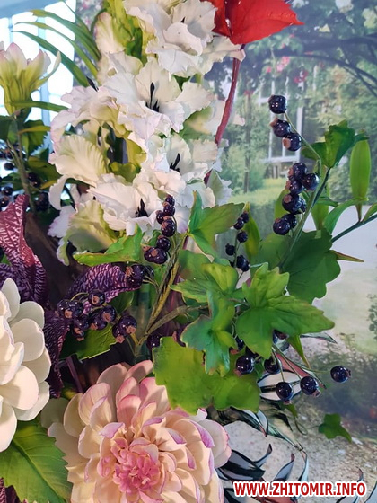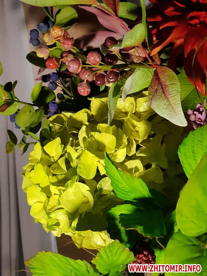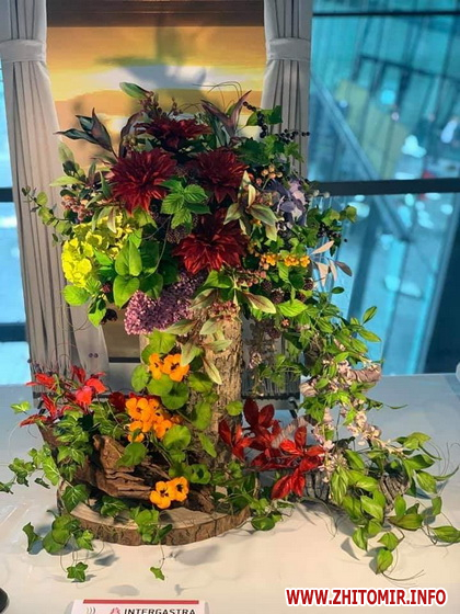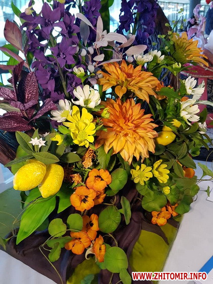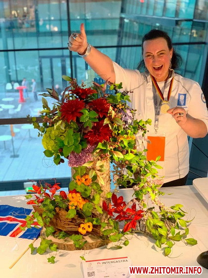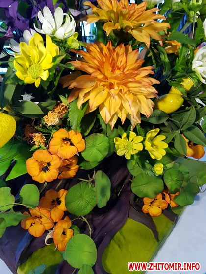 «Усі рослини взяті з саду моїх батьків у селі Смолдирів, що у Баранівському районі: жоржини, настурції, дельфінієм, хризантеми, плющ, дикий виноград, смородина, обліпиха, ожина, гладіолус, гортензія, гліцинія, чорниця. Світова спільнота оцінила роботу найвищим балом, назвала кращим експонатом чемпіонату. Я щаслива, що приношу радість у кожен дім та маю можливість представити нашу рідну Житомирщину на світовій арені», - розповіла Марія Шрамко та додала, що усі квіти їстівні, цукрові.