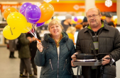 Протягом трьох днів святкового відкриття будуть діяти знижки на акційні товари: фітнес-браслети, ноутбуки, телевізори, велику і дрібну побутову техніку. Зі знижкою в 2 тис. грн можна буде придбати смартфон Apple IPhone XR за 16999 грн (замість 18999 грн) або ж заощадити 3500 грн при купівлі холодильника LG GW-B509SMJZ за ціною 14399 грн (звичайна – 17999 грн.).