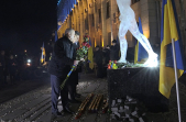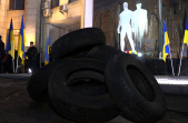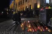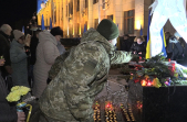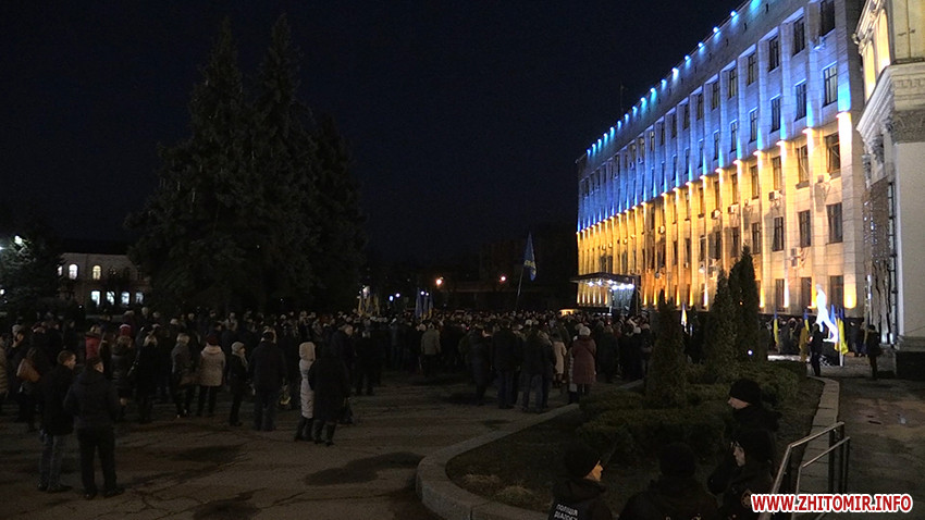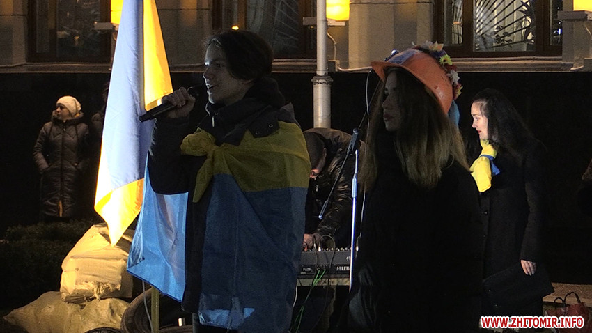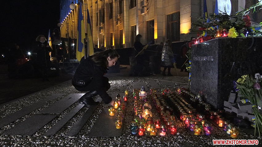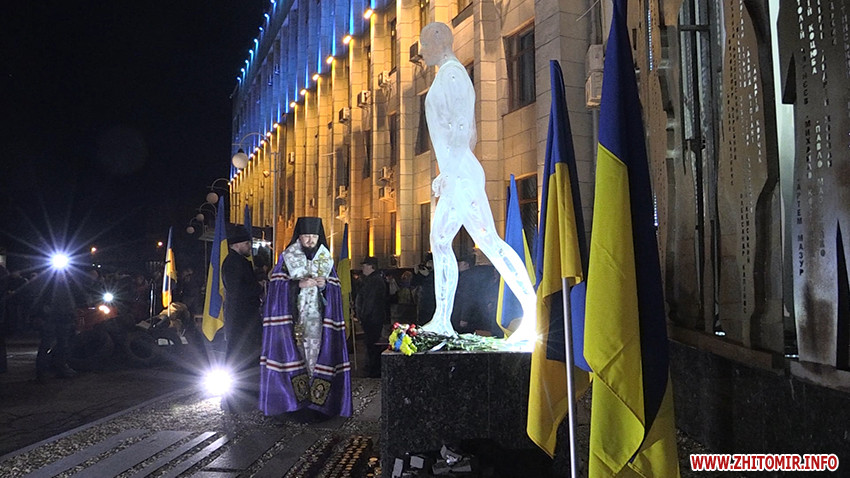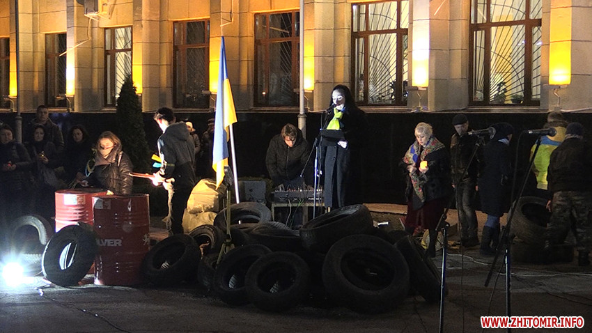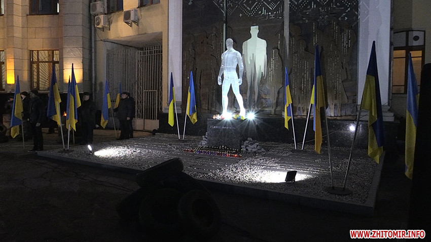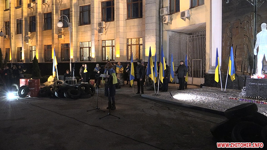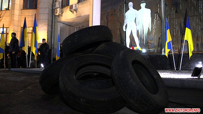 Ввечері 20 лютого до пам'ятника Героям Небесної сотні, що на майдані Корольова у Житомирі, принесли шини, прапори та бочки з вогнем для обігріву – як символ подій на Майдані у лютому 2014 року.