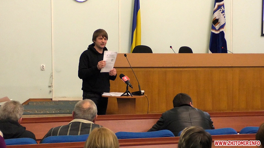Ввечері 20 лютого у Житомирі відбулися громадські слухання щодо забудови земельної ділянки на вул. Героїв Крут, 51. У сесійну залу міської ради прийшли мешканці сусідніх приватних будинків та багатоповерхівок, представники мерії та забудовник. Право голосу на слуханнях отримали 37 із 46 людей.