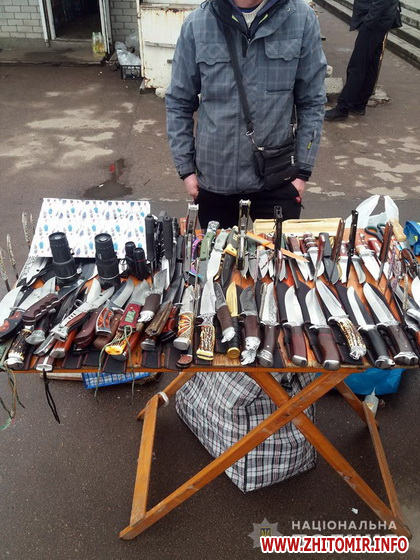 «Того дня дільничні офіцери відпрацьовували територію своєї дільниці, коли помітили на центральному ринку міста підозрілого хлопця, який торгував ножами. Жодних дозвільних документів продавець не надав, бо не мав їх взагалі», – розповів заступник начальника Житомирського ВП ГУНП Володимир Богдан.