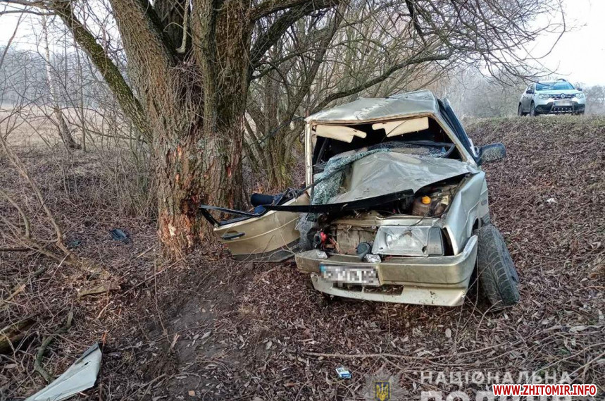 Вранці 22 лютого у селі Горопаях Любарського району ВАЗ в’їхав у дерево. Внаслідок ДТП загинули водій та пасажир. Ще одна жінка загинула під колесами ВАЗ у Хорошівському районі.