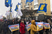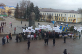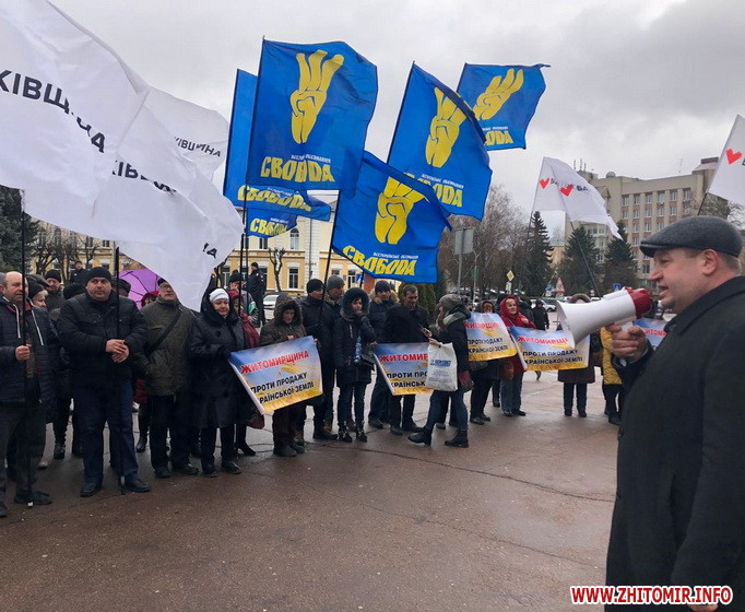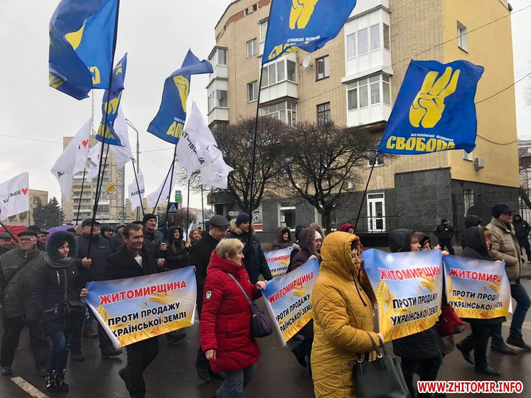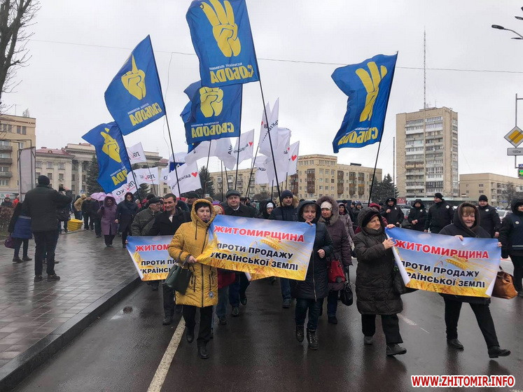 В Житомирі 24 лютого організували ходу з партійними прапорами під гаслом «Проти продажу української землі».