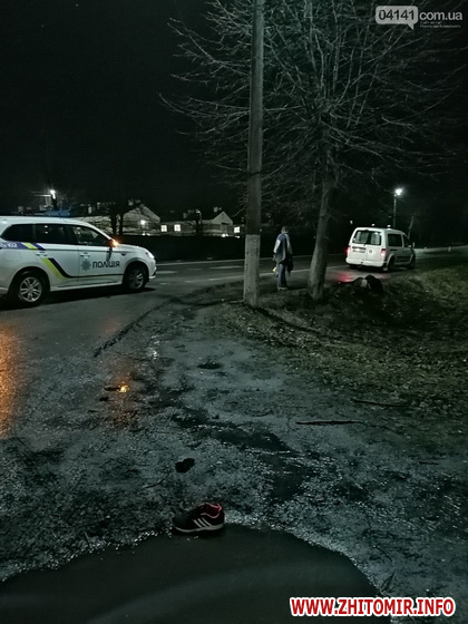 У м. Новограді-Волинському, на перехресті вулиць Житомирської та Рокосовського 26 лютого близько 18:45 автомобіль смертельно травмував велосипедиста. Водій на автомобілі з місця події втік. Нині поліцейські встановлюють водія-учасника ДТП та автомобіль, а також просять громадян повідомити їм інформацію, що може допомогти розслідуванню.