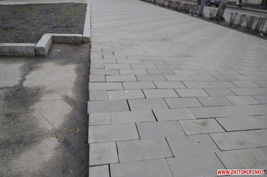 У липні 2019 року в центрі Житомира продовжували облаштовувати тротуари. Тоді начальник міського управління капітального будівництва В’ячеслав Глазунов говорив, зокрема, що підрядник виправить усі недоліки, у тому числі й щодо пошкодженої плитки.