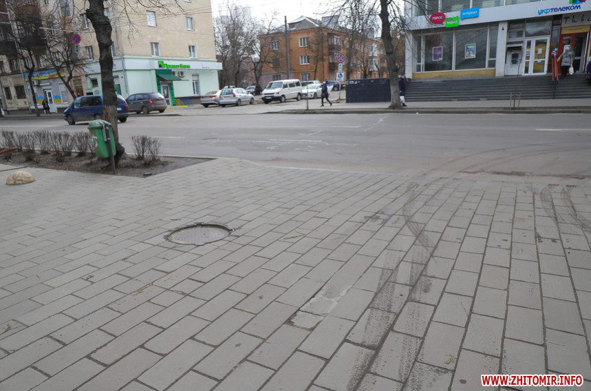 Фото тротуарів у центрі Житомира, зроблені у квітні 2019 року, дивіться тут