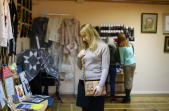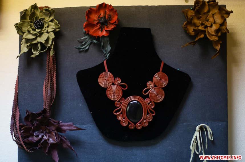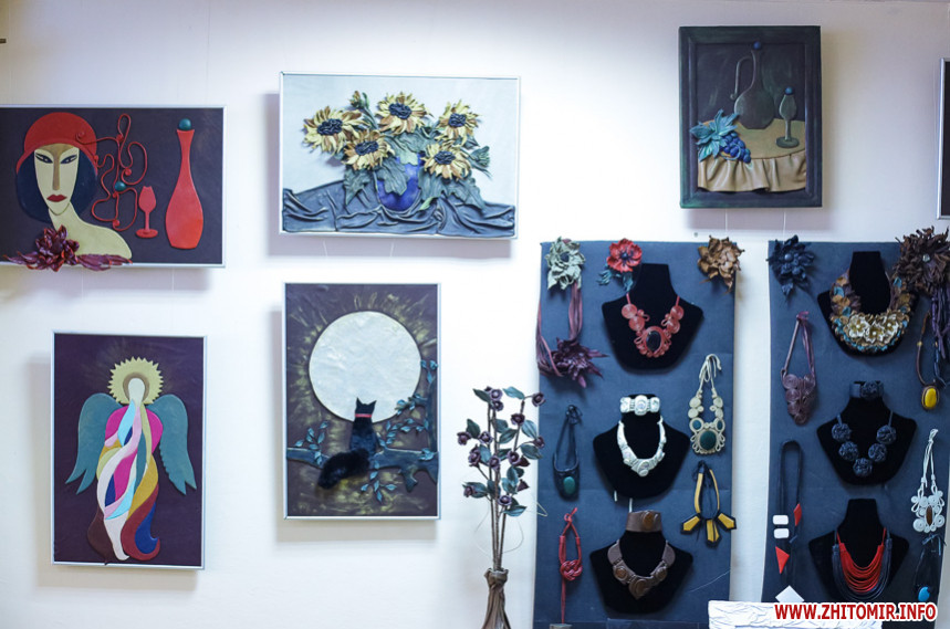 Майстрині представили свої роботи з декоративно-прикладного мистецтва серед яких: одяг, сумки, іграшки, прикраси ручної робота, а також картини зі шкіри та різні сувеніри.