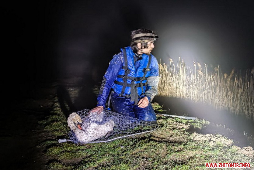 Уночі 10 березня на ставку поблизу села Новаки Коростенського району провели рятувальну операцію по вилученню з водойми пораненого лебедя. За словами місцевих мешканців, птаху загрожувала небезпека, адже поряд на нього вже чатували браконьєри.