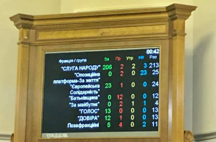 За таке рішення проголосували 259 народних депутатів, проти – 24, утрималися – 3, не голосували 29. Всього – 315. По фракціях: «Слуга народу» - 206, «Європейська солідарність» - 23, «Голос» - 13, депутатська група «Довіра» - 12, позафракційні -5. Результати поіменного голосування тут.